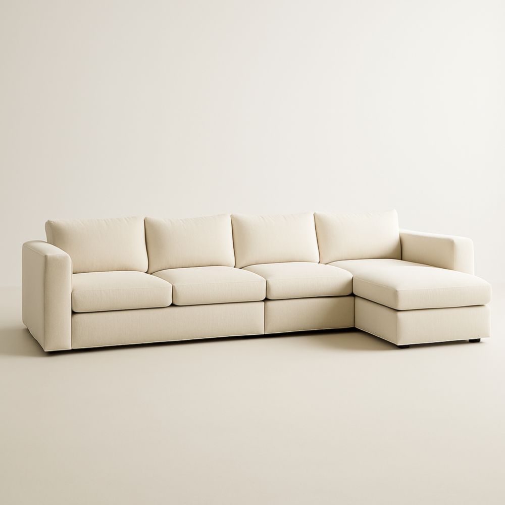 Divano angolare in tessuto senape con chaise longue