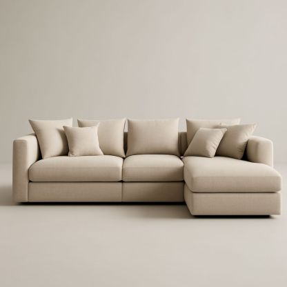 Divano ad angolo in tessuto color beige